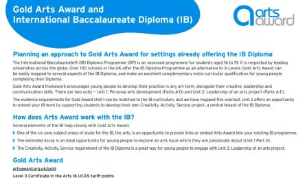 This resource is designed to show you how Gold Arts Award can be easily mapped to several aspects of the IB Diploma.